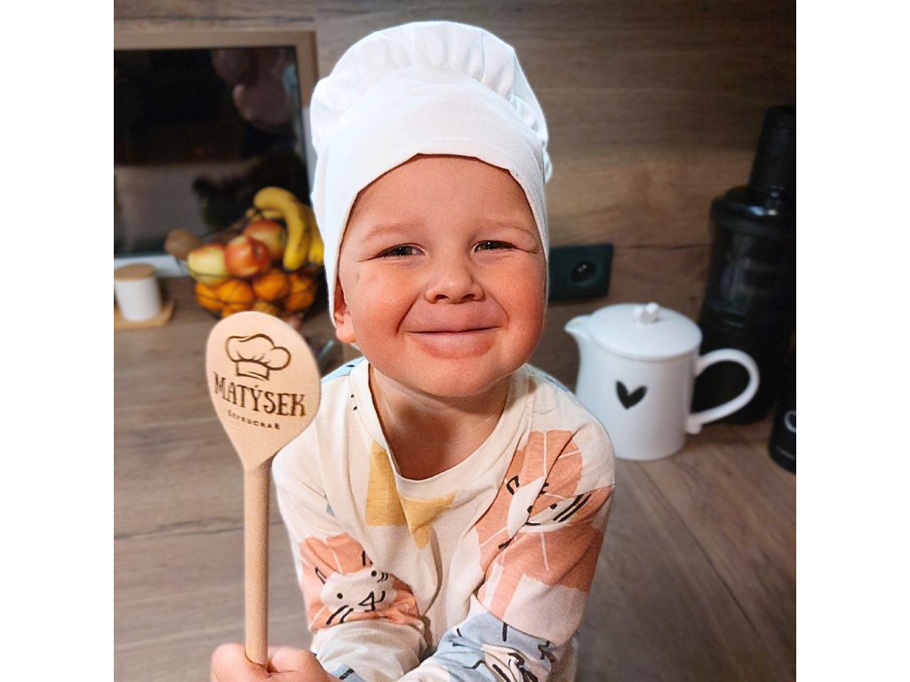 - Personalizace – uveďte jméno dítěte do poznámky ve třetím kroku objednání a my jej na vařečku vygravírujeme